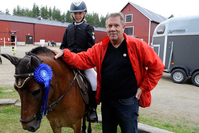 Tilda Lundberg, Älvsby Ryttarförening, grattades av kommunalrådet Bill Nilsson efter sin andraplats i Ponny- DM kategori B (bilden ovan).